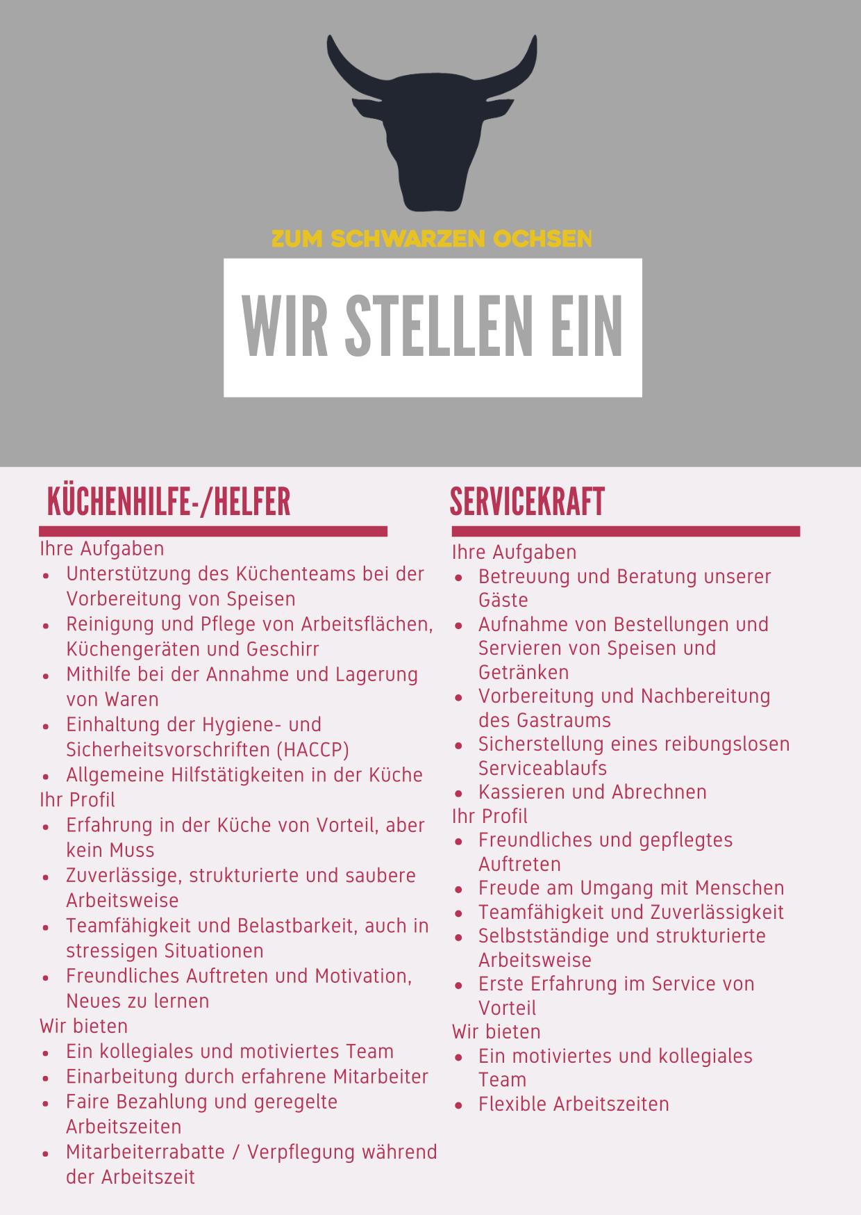 Personal gesucht....